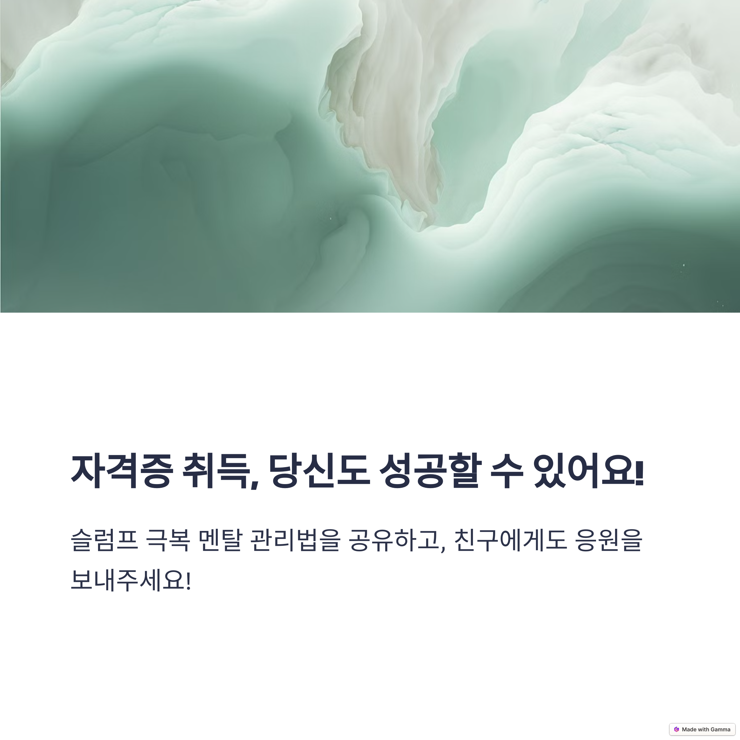 스스로를 믿고, 꾸준히 노력하며, 슬럼프를 성장의 발판 삼아 마침내 자격증 취득이라는 값진 결실을 맺으시기를 진심으로 응원합니다.