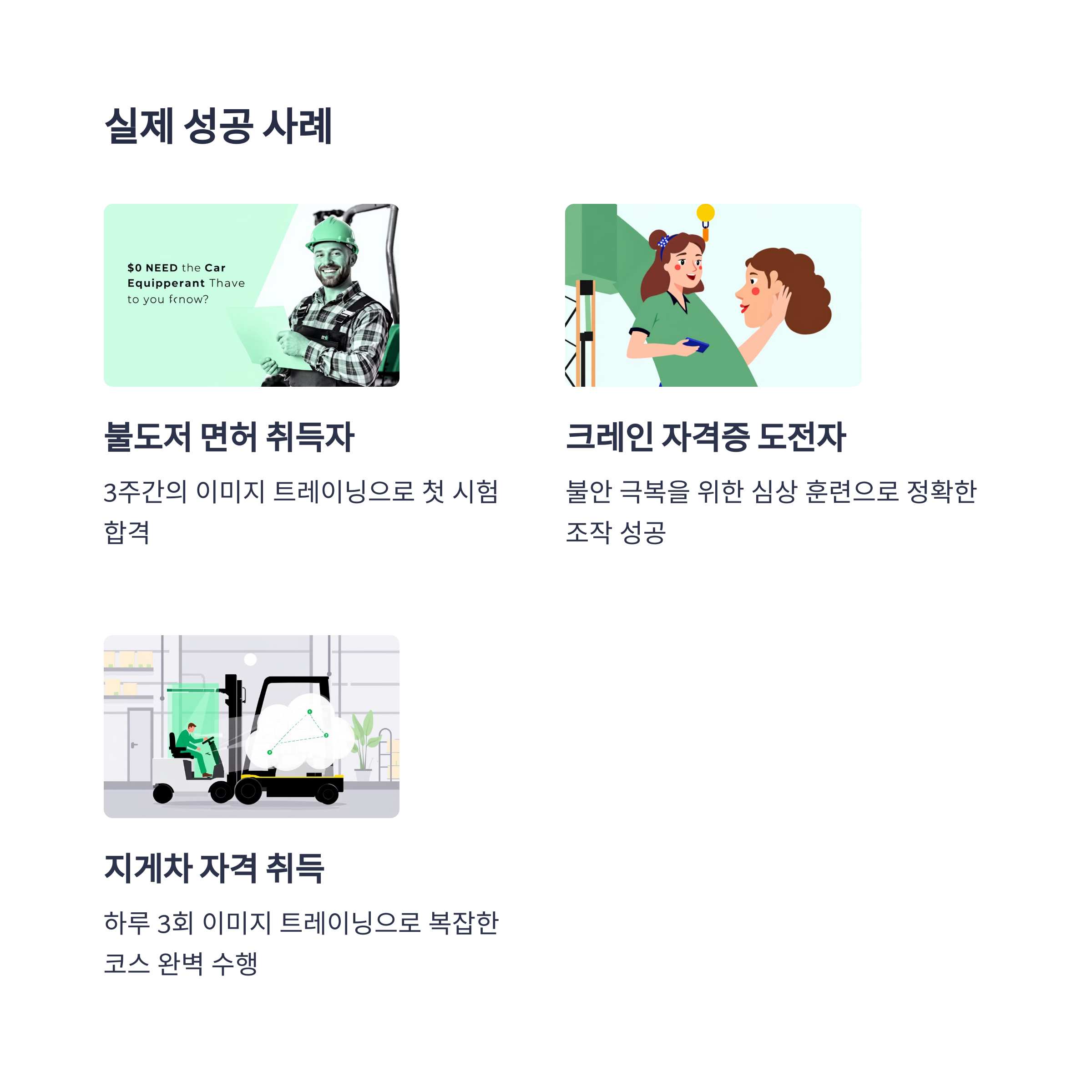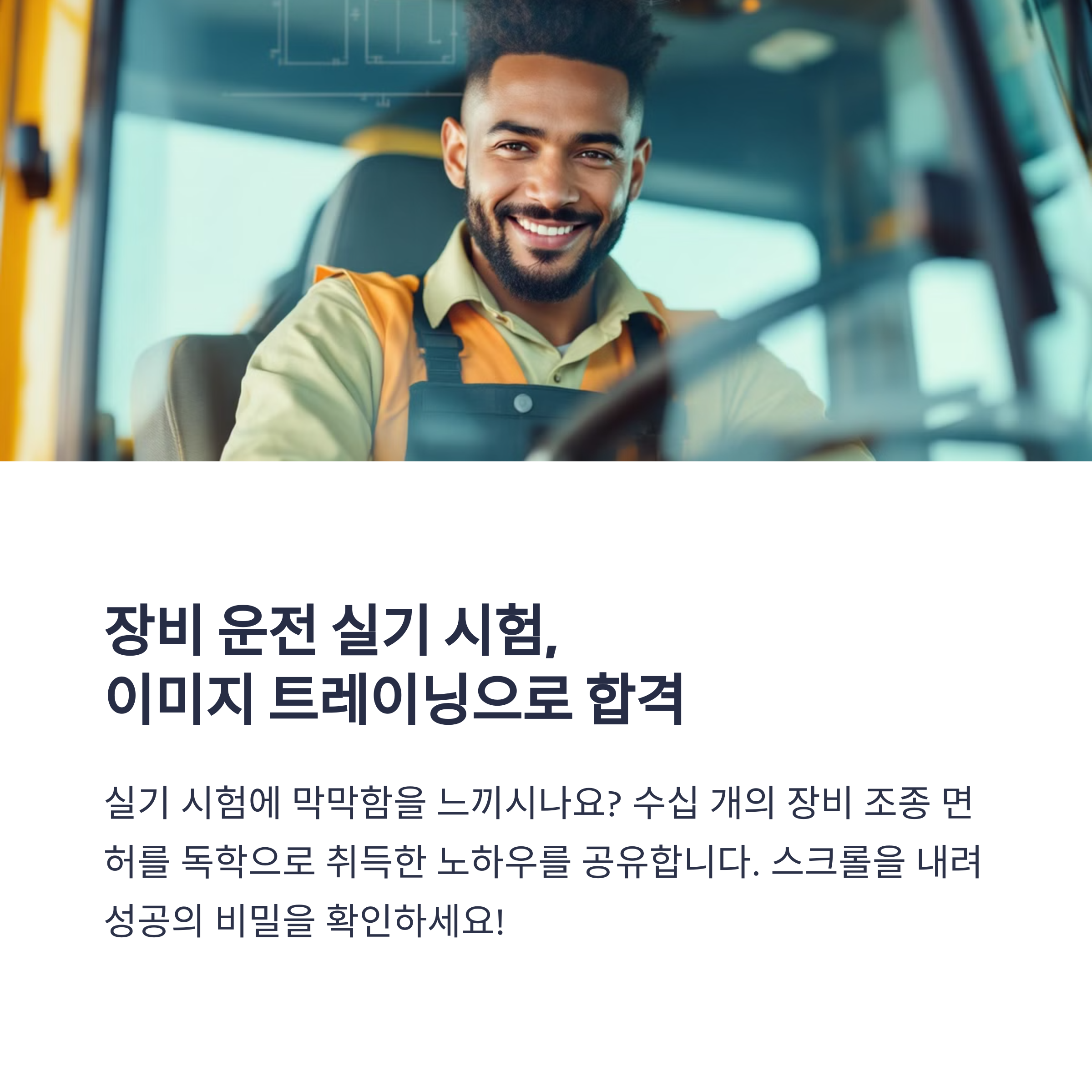 장비 운전이나 조종 실기 시험을 준비하시는 여러분, 안녕하세요! 복잡하고 까다로운 실기 시험 앞에서 막막함을 느끼시거나, 효율적인 독학 방법을 찾고 계시나요? 저는 수십개의 장비 조종 면허를 독학으로 경험한 사람으로서, 이미지 트레이닝이라는 강력한 도구를 통해 실기 시험을 성공적으로 합격하여 자격증을 취득하였습니다.